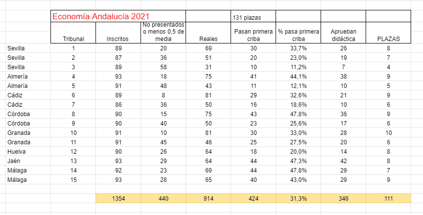 Ya tenemos las estadísticas de la segunda prueba de Economía en Andalucía: