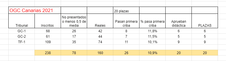 Vemos que aprueban tantos opositores como plazas en los tres tribunales, por lo que todos ellos garantizan plaza. Tenemos un opositor que supera todo el proceso y, por tanto, obtiene plaza. ¡Enhorabuena!